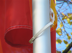 Befestigung der Fahne mit Kunststoffhaken am Ring.